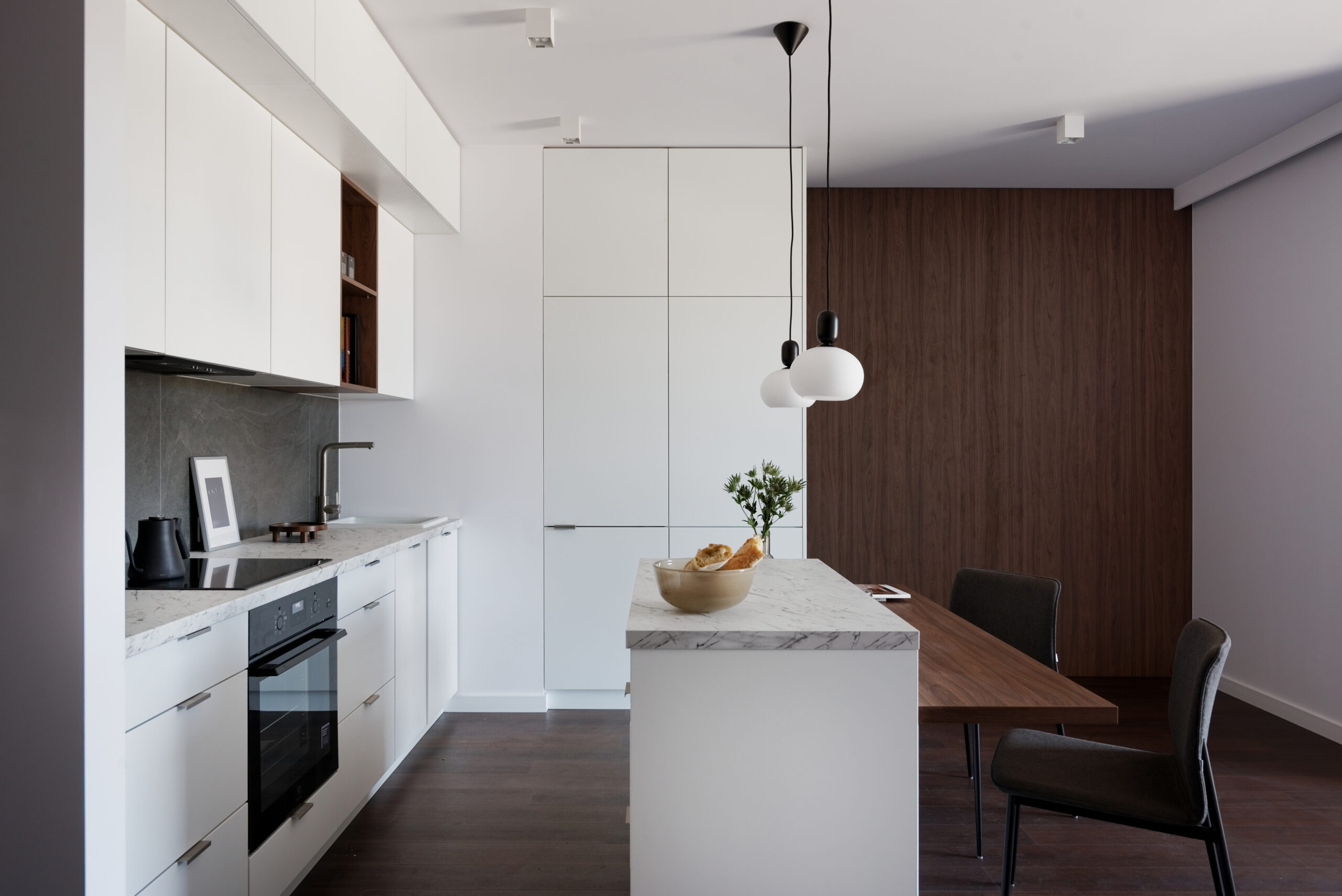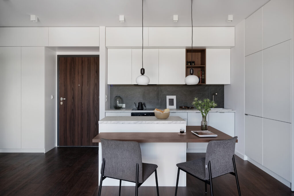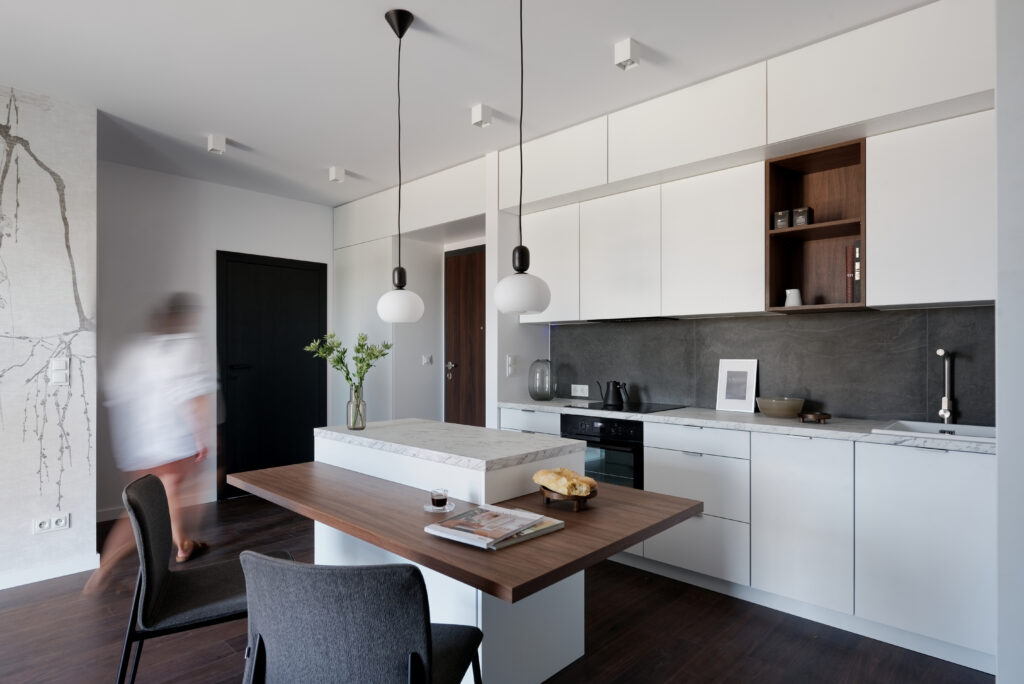 Co do układu mieszkania to w międzyczasie pojawił się pomysł, by z najmu krótkoterminowego być może przejść w najem długoterminowy. Przy takich założeniach jasne się stało, że mieszkanie musi nie dość, że przyciągnąć potencjalnych najemców, którzy spędzą w nim zaledwie weekend, to również tych, którzy wprowadzą się na dłużej z większą ilością przedmiotów i będą chcieli przygotować w kuchni coś więcej niż tylko herbatę.