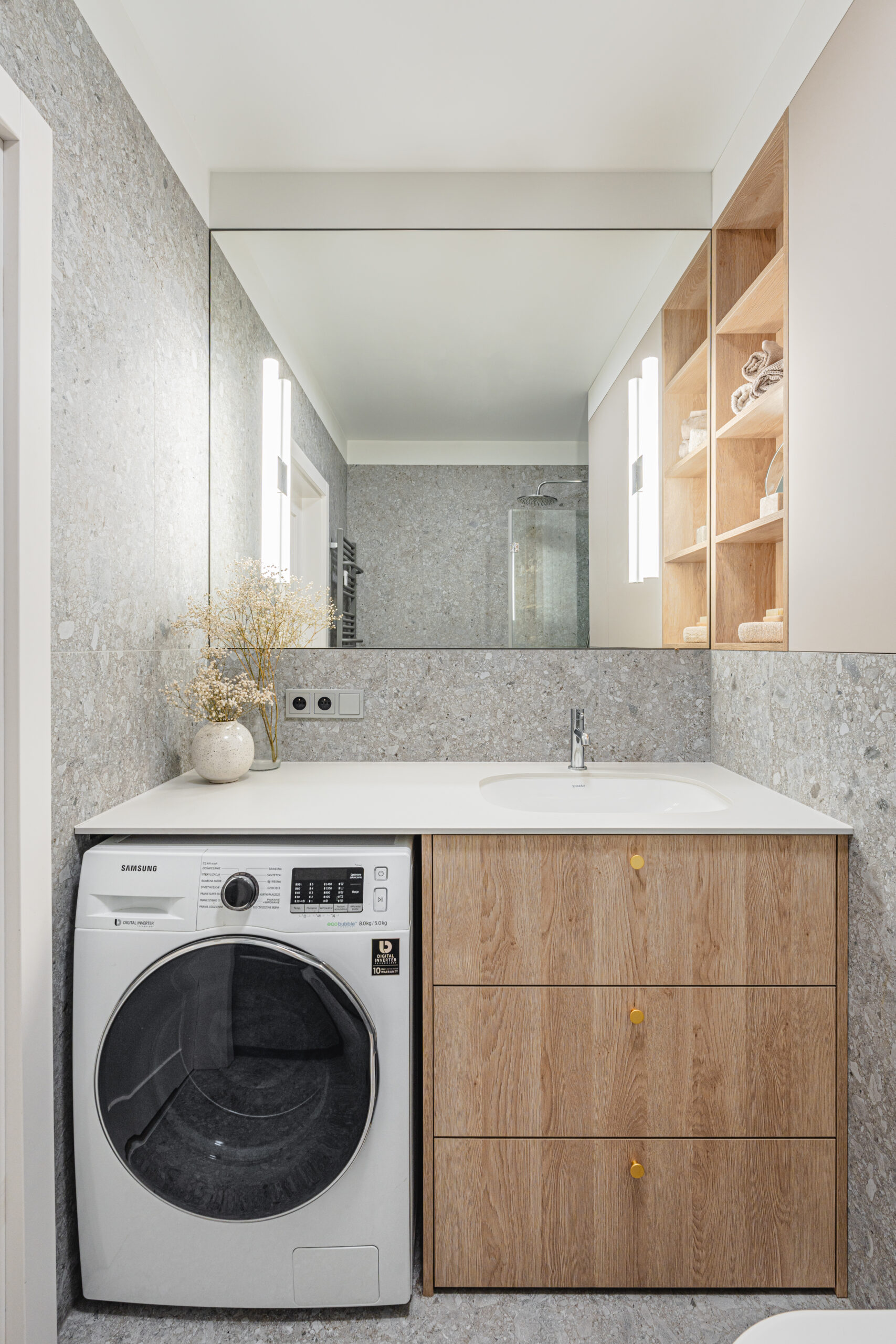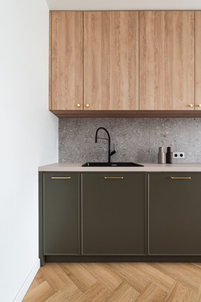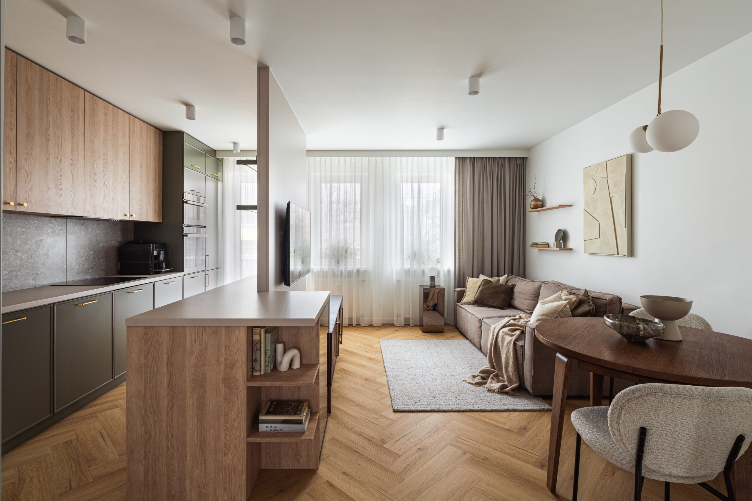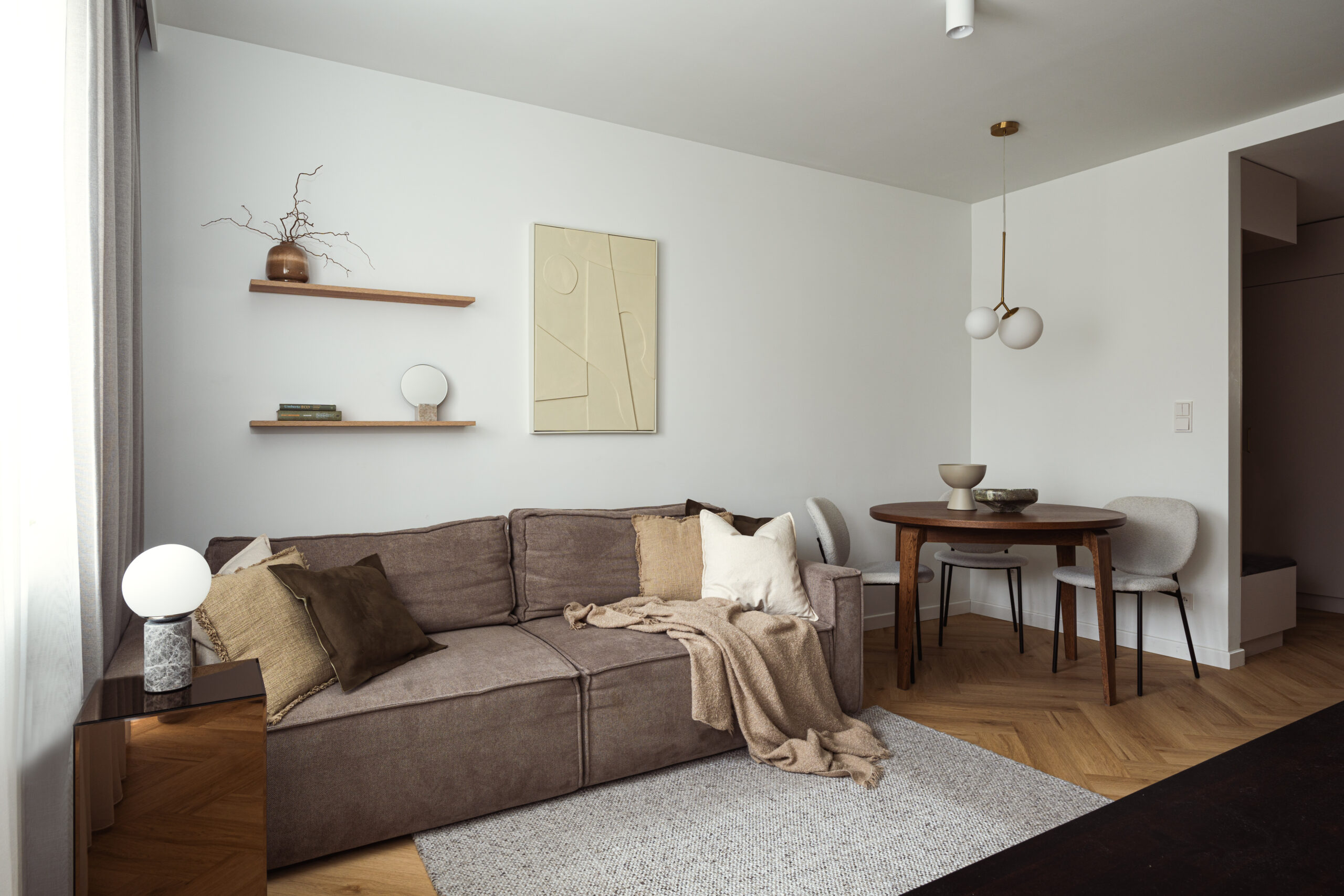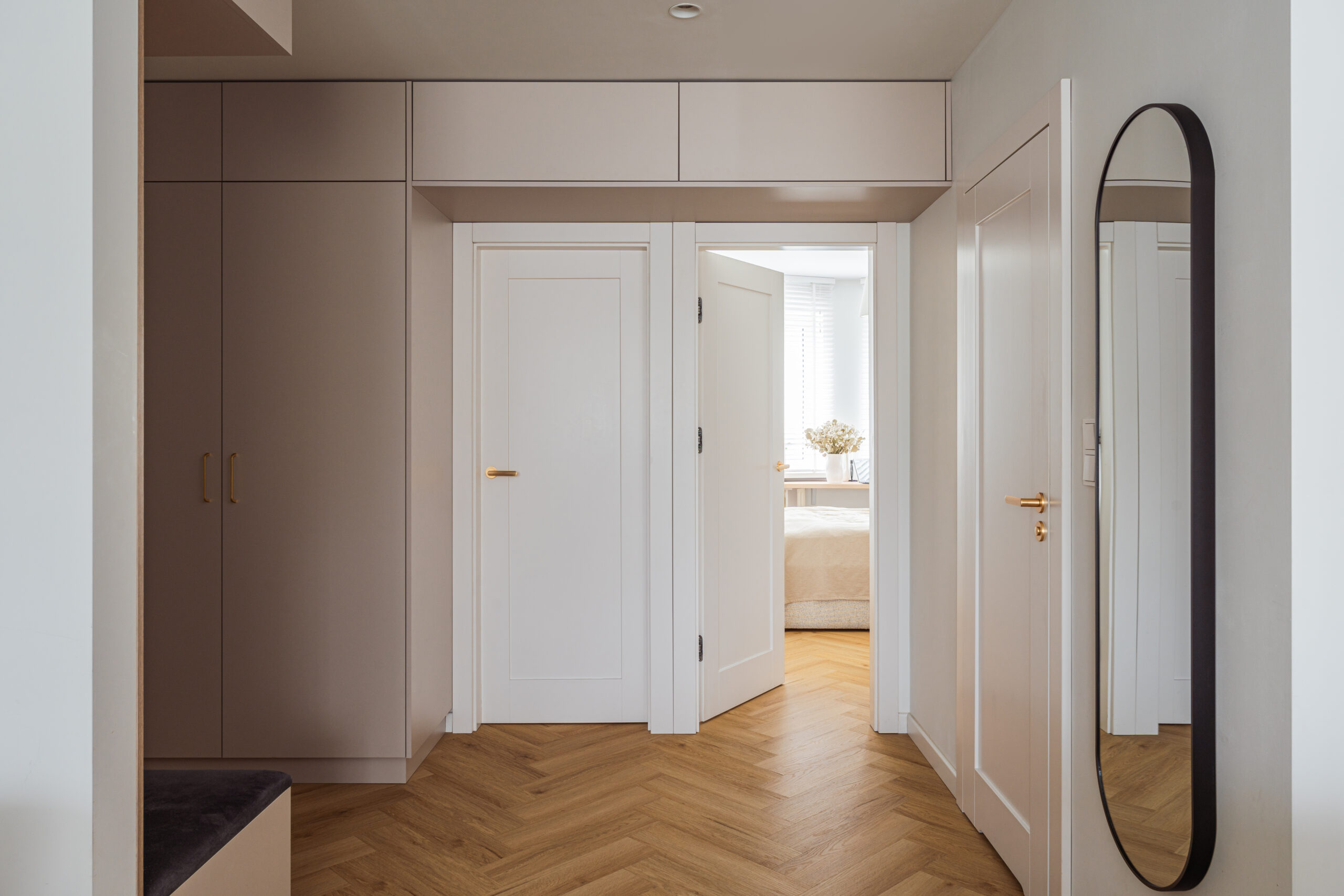 Projekt obejmował remont generalny wtedy jeszcze 2-pokojowego mieszkania z oddzielną kuchnią, dla potrzeb 3-osobowej rodziny. Wymagał zatem przaaranżowania jego układu, by w mieszkaniu znalazły się 2 sypialnie oraz funkcjonalna kuchnia, na której zależało inwestorom.